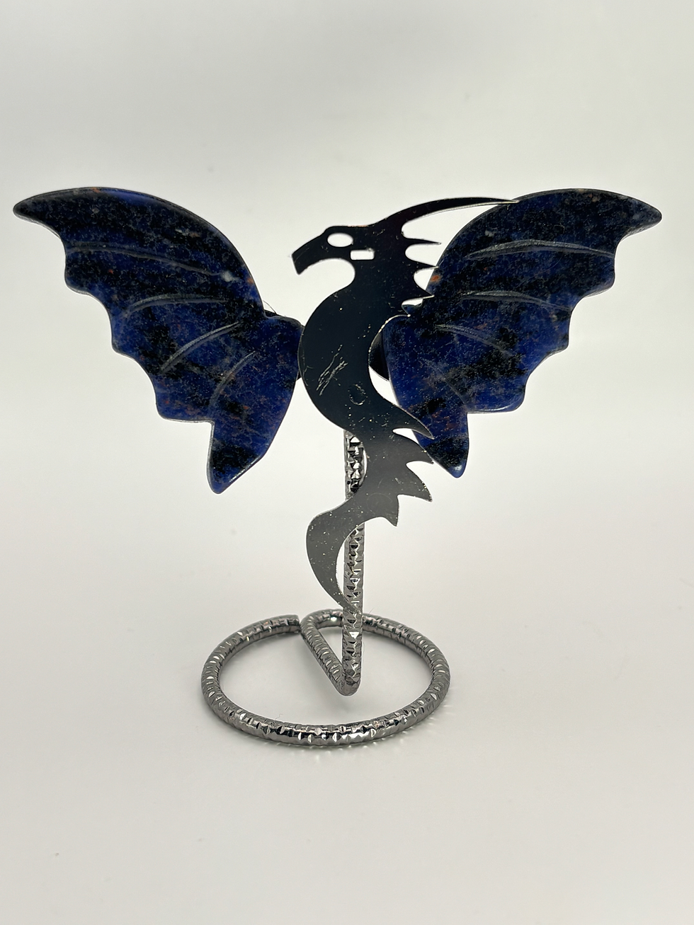 Silver Sheen Obsidian Dragon Wings Mounted on a Stand Figurine